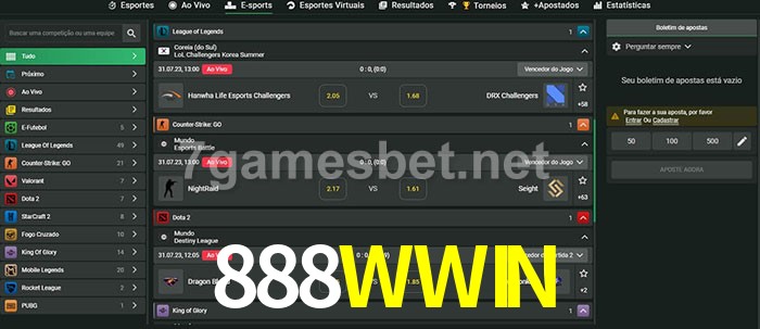 O 888WWIN oferece uma grande seleção de opções de apostas em e-sports com probabilidades competitivas